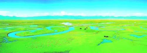 在這里,每看一眼都是風(fēng)景,每行一步都有故事,每一片土地都是一幅絕美的圖畫。黃河從云煙蒼茫的雪域高原流出,冰雪化為淙淙流水,沿途九曲回腸,匯納百川,留下一個個碧波蕩漾的湖泊,懷抱起一片片豐腴壯美的草原,孕育著一座座城鎮(zhèn)和村落,養(yǎng)育了各族兒女,播撒著希望,醞釀著生機……