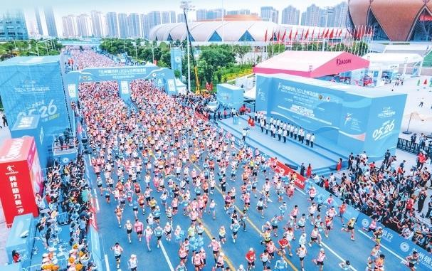 2024年5月26日7時30分,“蘭州銀行杯”2024蘭州馬拉松在蘭州奧體中心鳴槍開賽,來自美國、德國、澳大利亞、肯尼亞、韓國等22個國家和地區(qū)以及全國各地的4萬名選手相聚金城,用奔跑釋放生命活力。2024年是蘭州馬拉松新十年的開端之年,首次采用“全半程混合分區(qū)”的出發(fā)機制,并對賽道進行優(yōu)化升級,將絲路文化、黃河文化融入?yún)①惙酮勁频脑O計中,還開展甘肅省博物館、甘肅簡牘博物館、蘭州市博物館、讀者雜志社的文創(chuàng)展銷活動,邀請參賽選手免費參觀9個景區(qū),為廣大選手提供更加優(yōu)質(zhì)、精彩的賽事體驗。