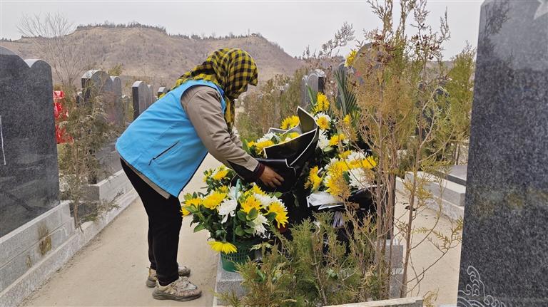 除現(xiàn)場祭掃外,網(wǎng)絡(luò)“云祭掃”與代客祭掃服務(wù)亦成為市民選擇。“我們推出代客祭掃,主要是為人在外地或者事務(wù)繁忙、不便親臨現(xiàn)場祭掃的顧客提供服務(wù),完成他們?yōu)橛H人祭掃的心愿。”韓利紅介紹,需要“網(wǎng)上祭掃”“代客祭掃”等業(yè)務(wù)的市民,可以通過關(guān)注“甘肅臥龍崗”微信公眾號,選擇相應(yīng)的服務(wù),服務(wù)內(nèi)容包括擦拭墓碑、敬獻(xiàn)鮮花祭品、誦讀祭文等服務(wù),工作人員會將祭掃全程通過視頻、照片等方式反饋給委托人,滿足市民日趨多樣化的祭掃需求。