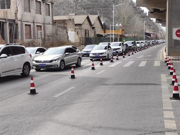 3月22日上午8時,通往大砂坪公墓區(qū)、甘肅臥龍崗人文紀(jì)念園的佛慈大街上車流量明顯增多,雖然車輛行駛速度緩慢,但整體秩序良好。在大砂坪橋公交站處準(zhǔn)備乘坐清明節(jié)掃墓臨時專線公交車前往公墓祭掃的市民排起了長隊。墓園附近,等待進(jìn)入的車輛也排起了長隊,蘭州市交警支隊河北大隊交警引導(dǎo)祭掃車輛安全進(jìn)出墓園停車場,保障路面交通暢通。