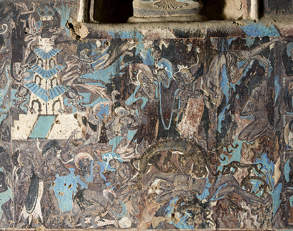 畫中,薩埵太子橫臥山崖的身姿,肌肉線條如青銅雕像般充滿力量感;母虎與幼虎的刻畫則通過夸張的動態(tài),傳遞出生命的原始張力。(敦煌研究院供圖)