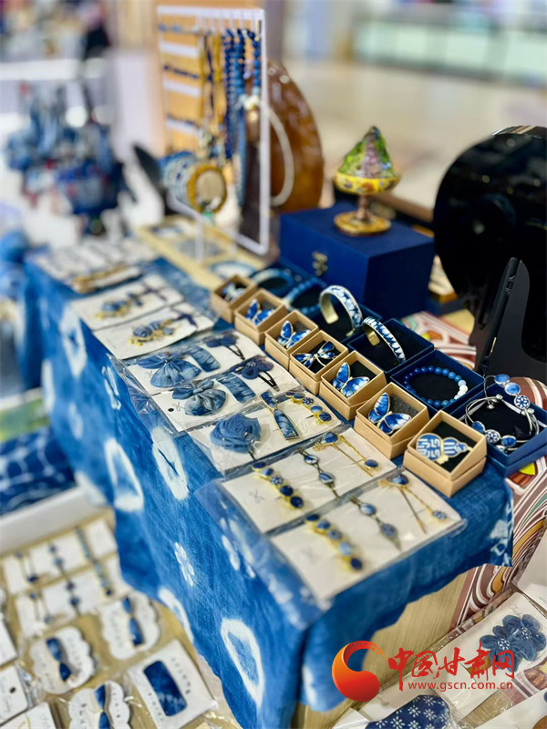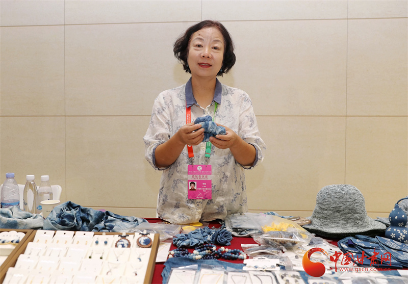 在第八屆進博會的現(xiàn)場,甘肅館以其獨特的人文底蘊吸引了眾多目光。展館內(nèi),弧形山脈造型的背景,仿佛展現(xiàn)著甘肅的壯美風(fēng)光,而慶陽香包、敦煌絲巾等精美展品,則如璀璨明珠,訴說著甘肅的文化魅力。就在這其中,來自平?jīng)龅墓欧ㄋ{染技藝展臺格外引人注目,一件件藍染作品散發(fā)著獨特的草本氣息,向世界展示著非遺的獨特魅力,而這些作品的創(chuàng)作者,正是平?jīng)鏊{染技藝的市級非遺傳承人李梅。
