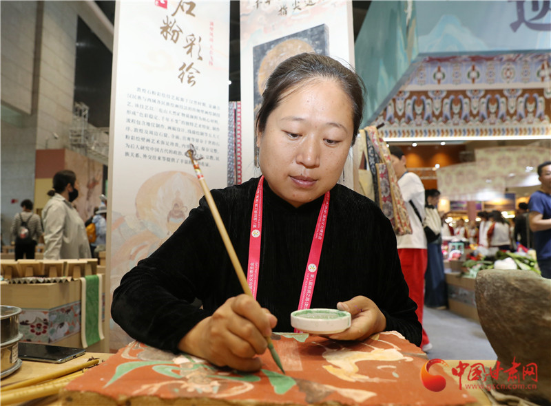 河西走廊的風(fēng),吹過莫高窟的崖壁,也吹過侯楊紅在敦煌的十七個春秋。這座在戈壁中矗立千年的文化之城,每一粒沙都裹著壁畫的故事,每一塊彩石都藏著文明的溫度——而38歲的敦煌石粉彩繪技藝非遺傳承人侯楊紅,便是這故事的續(xù)寫者、這溫度的傳遞者。自2008年跨越兩千多公里奔赴而來,她便以熱愛為炬,在石粉與顏料的交融里,喚醒了沉睡千年的壁畫魂。