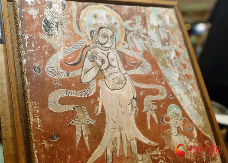 與敦煌石粉彩繪技藝的相遇,像一場跨越時空的約定。那天,她看見老師傅蹲在黨河岸邊,將彩色石頭細(xì)細(xì)研磨,青金石化作澄澈的藍(lán),朱砂揉成熾熱的紅,礦石粉末與膠液相融后,在泥板上暈開的光澤,竟與莫高窟壁畫的溫潤如出一轍。“這不是簡單的畫畫,是在和千年前的畫工對話。”她當(dāng)即拜師,從此成了黨河邊最執(zhí)著的“尋石人”——一遍遍彎腰撿拾彩石,在研磨聲里探尋壁畫“千年不褪色”的奧秘:黨河沉淀的澄板土做底,摻上細(xì)沙與棉絮拌勻,再敷上親手制的礦石顏料,每一步都藏著對古法的敬畏,每一筆都浸著對文明的珍視。有時對著壁畫臨摹,恍惚間竟覺指尖觸到了千年前的顏料,耳畔似有畫工的低語,那份時空交錯的共鳴,讓她更堅定了守護(hù)這份技藝的決心。