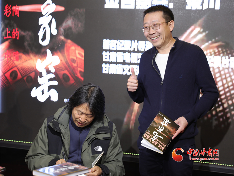 中國甘肅網(wǎng)11月24日訊 11月23日,《馬家窯·彩陶上的中國》公益展映暨同名圖書首場線下簽售在蘭州舉行。導(dǎo)演秦川親臨現(xiàn)場,與紀錄片愛好者近距離互動交流,分享紀錄片背后的創(chuàng)作故事,并為讀者簽售、分享新書。