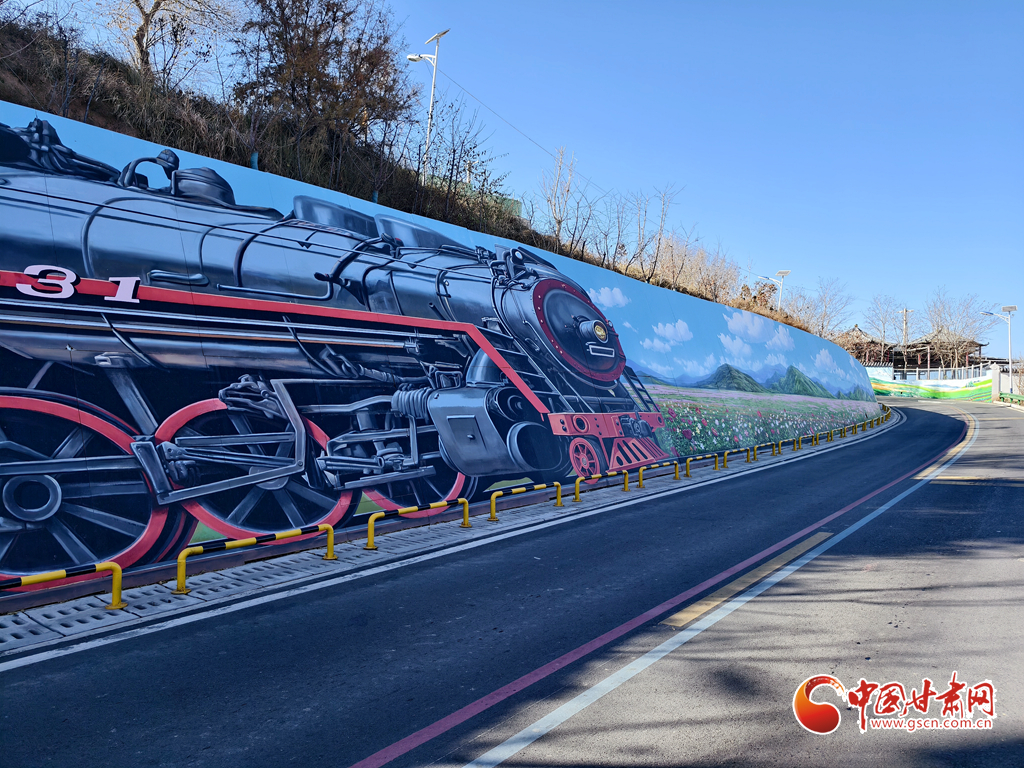 初冬蘭州蘭山,涼意漸濃,“煙雨蘭山”鄉(xiāng)村振興示范帶的童話彩繪卻讓這里成了市民的“造夢(mèng)秘境”。低成本的藝術(shù)改造點(diǎn)亮墻面,連“0931號(hào)”蒸汽火車手繪也在此煥發(fā)光彩——車頭暖光里,Q版蘭州瓜果、土撥鼠串聯(lián)成列,宛如“童話專列”載著鄉(xiāng)愁與特產(chǎn)故事,邀人走進(jìn)山間童話。