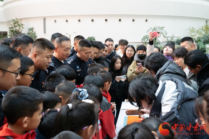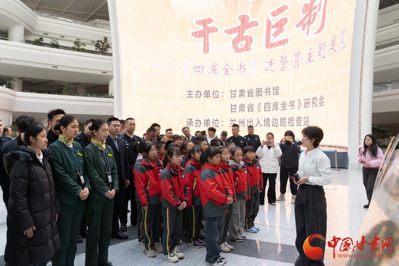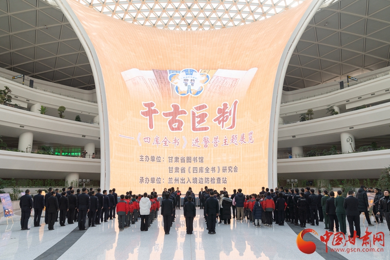 中國(guó)甘肅網(wǎng)1月7日訊 1月6日,在第六個(gè)中國(guó)人民警察節(jié)即將來(lái)臨之際,蘭州中川國(guó)際機(jī)場(chǎng)T3航站樓航空樞紐內(nèi)墨香氤氳,由甘肅省圖書(shū)館、甘肅省《四庫(kù)全書(shū)》研究會(huì)與蘭州出入境邊防檢查站共同承辦的“千古巨制——《四庫(kù)全書(shū)》進(jìn)警營(yíng)”活動(dòng)如期舉辦。蘭州出入境邊防檢查站全體民警與各友鄰單位代表齊聚于此,與文溯閣本《四庫(kù)全書(shū)》展開(kāi)一場(chǎng)跨越時(shí)空的文化對(duì)話。