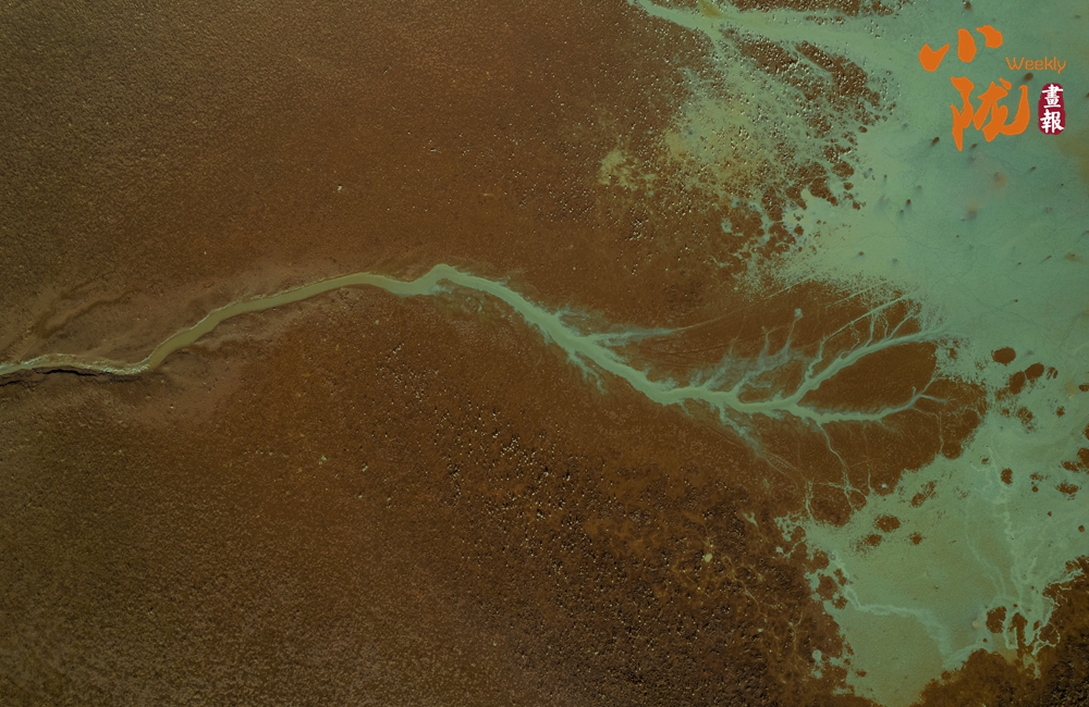 潮水褪去,灘涂勾勒出極似樹(shù)根分支的有機(jī)形態(tài)——主脈粗壯有力,次脈隨之伸展,末梢則細(xì)密如須根,整片灘面仿佛成為一棵倒生巨樹(shù)的根系拓印,靜默中透出磅礴的地質(zhì)美感。