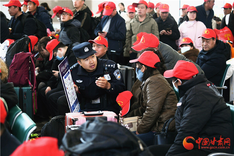 這批務(wù)工人員來(lái)自定西市各縣區(qū),既有復(fù)崗務(wù)工人員也有新聘崗務(wù)工人員,為鋪就這條溫暖返崗路,蘭州鐵路公安處定西北站派出所積極與定西北車站、客運(yùn)部門(mén)通聯(lián),專門(mén)開(kāi)辟綠色通道,暢通進(jìn)站、安檢、檢票等進(jìn)站環(huán)節(jié),劃定專門(mén)候車進(jìn)站區(qū)域,同時(shí),增派警力逐一引導(dǎo)務(wù)工人員有序進(jìn)站,幫助提拿大件行李,講解防范電信詐騙小妙招,進(jìn)一步保障了務(wù)工團(tuán)體旅客乘車安全。