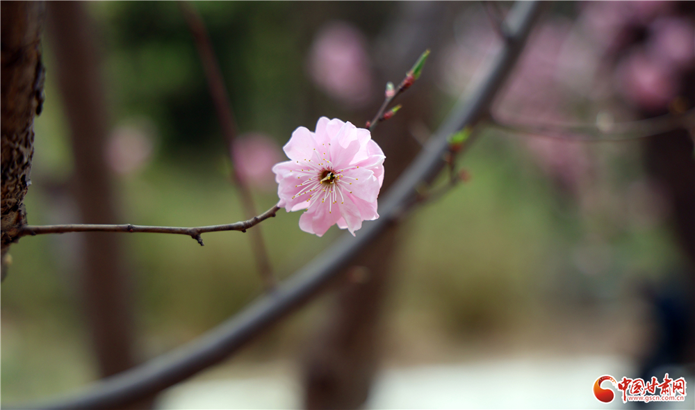 一枝粉花悄然綻放,層層花瓣嬌嫩柔美,花蕊間蜜蜂穿梭采蜜,盡顯春日生機。淺粉的花朵在枝頭搖曳,將春日的溫柔與靈動定格,成為市民鏡頭里最美的春日印記。