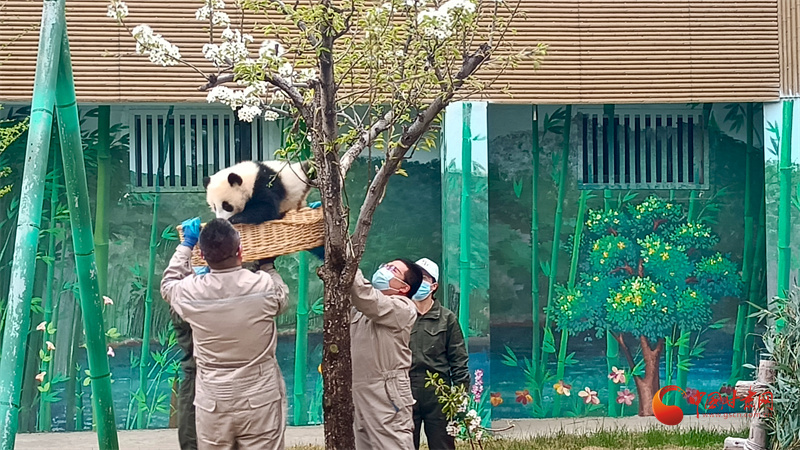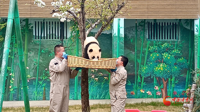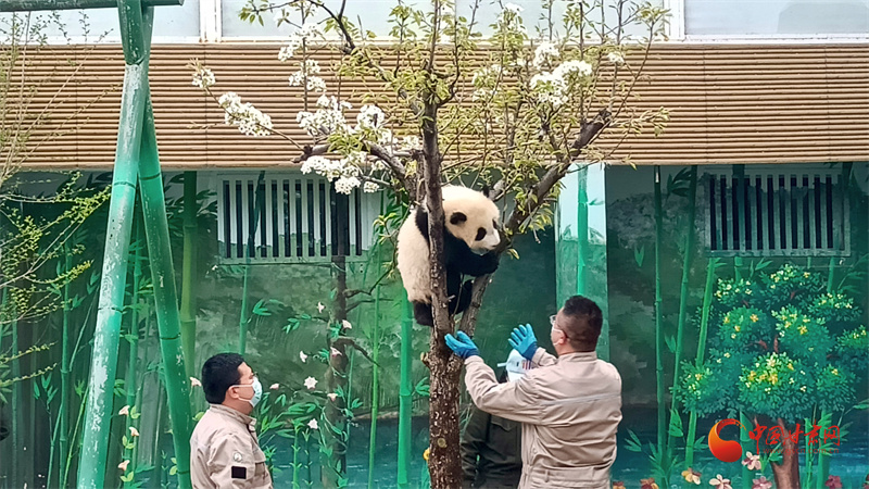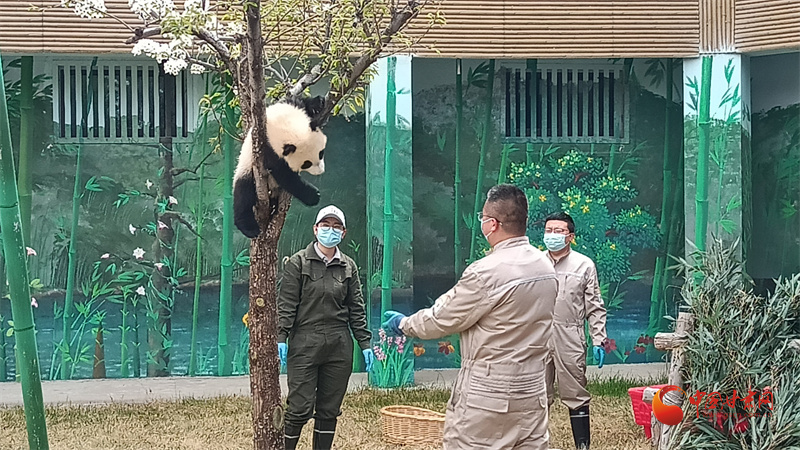 曼蘭崽愛上樹,工作人員全程呵護(hù)