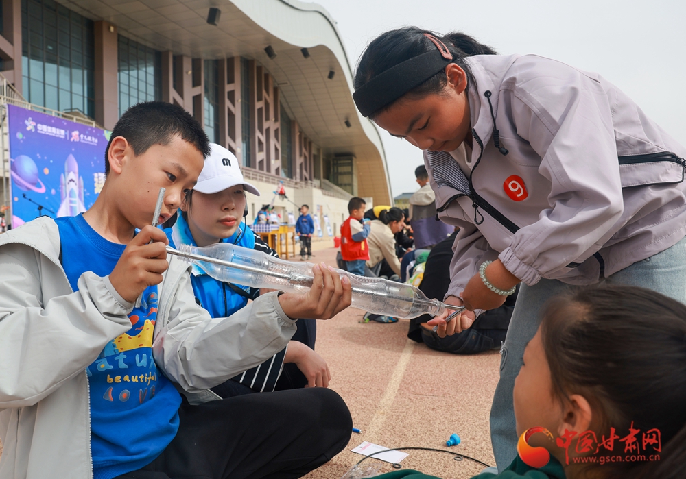 4月25日,酒泉市金塔縣2026年“奔跑吧·少年”航天知識科普暨水火箭競技大賽舉行。活動現(xiàn)場,學(xué)生在科普老師指導(dǎo)下開展水火箭組裝、調(diào)試,沉浸式參與航天科普活動。