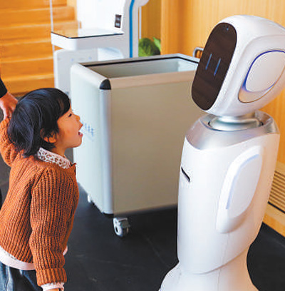 小讀者與館內(nèi)的機器人交流。闕明芬 攝(人民視覺)