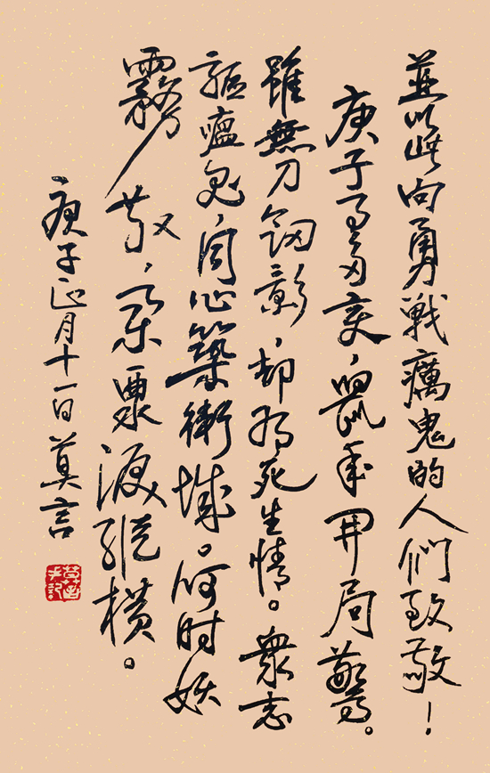 “同心驅(qū)癘鬼,眾志筑長(zhǎng)城” 莫言 作