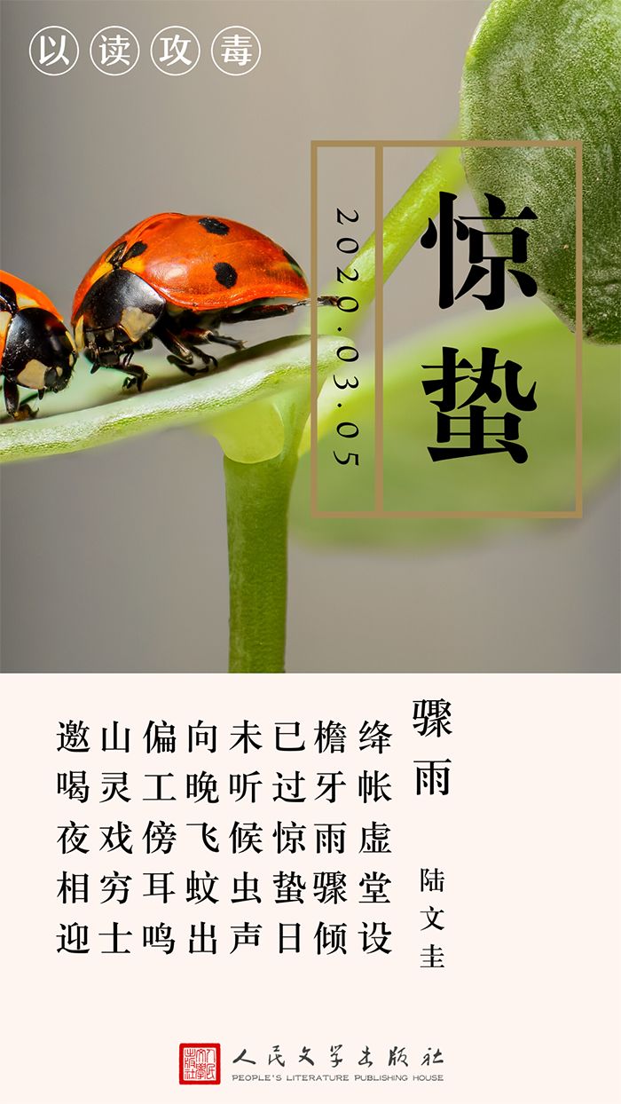 “萬卷古今消永晝,一窗昏曉送流年”,在抗疫重于踏青、防毒甚于訪友的當(dāng)下,一書在手物我兩忘的閱讀就是宅家攻毒的法寶。“我讀,故我在”,自新華網(wǎng)悅讀頻道在其元宵節(jié)海報(bào)上首倡“以讀攻毒”至今,“以讀攻毒”已成文化界熱詞。今日驚蟄,萬物復(fù)蘇,為給居家久蟄的人們鼓勁祈福,展現(xiàn)新華網(wǎng)悅讀推廣人聯(lián)盟與全國(guó)人民一道守望相助、共克時(shí)艱,新華網(wǎng)客戶端、新華網(wǎng)悅讀頻道、新華網(wǎng)公益頻道特舉辦“以讀攻毒同題公益海報(bào)聯(lián)展”活動(dòng),以此祈愿國(guó)泰民安、山河無恙!祈愿每一位讀者讀有所獲、安康順意!