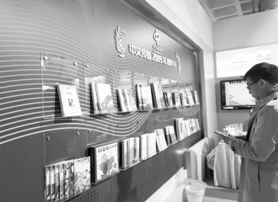 在今年的北京圖書訂貨會(huì)上,讀者在中文傳媒年度好書展墻前駐足。