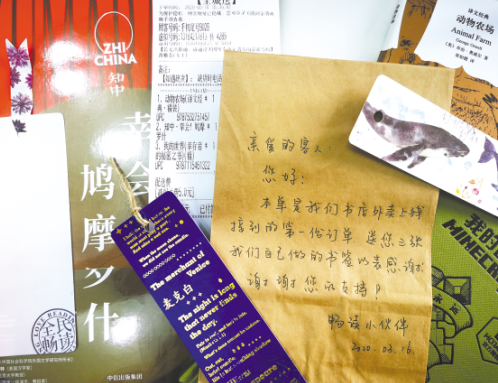 書店人為外賣訂單寫下溫暖留言。美團(tuán) 供圖