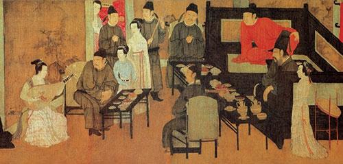 但據(jù)考證,到了北宋,合餐制開始出現(xiàn),最關(guān)鍵的原因是北宋飲食文化的商業(yè)化。食材多元、烹飪樣式增多,極大地豐富了宋代餐桌的菜色,教坊酒樓、勾欄瓦舍等公共飲食空間的出現(xiàn),是中國民眾飲食文化的一次重要改革。