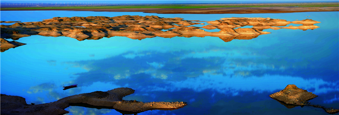 戈壁晚霞和暮鼓,疏勒河流古。聽(tīng)靜水流深,百轉(zhuǎn)千回,澤潤(rùn)荒原土。