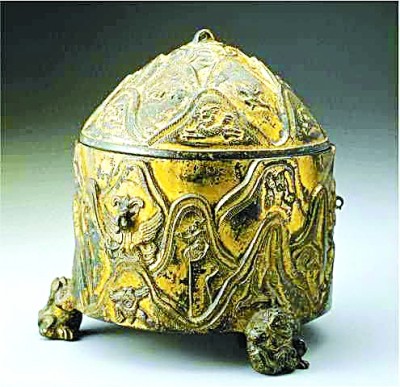 東漢銅鎏金山紋獸足樽,現(xiàn)藏于臺(tái)北故宮博物院 資料圖片