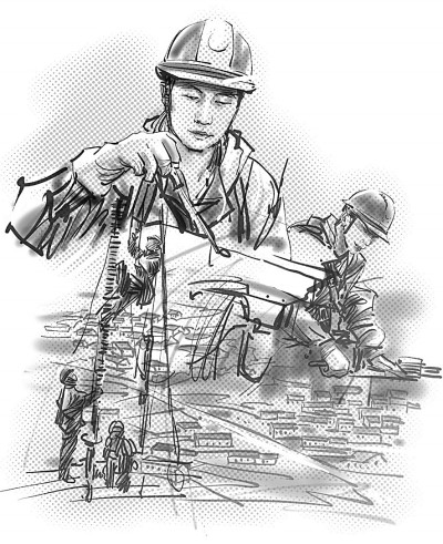 就個(gè)人條件而言,胡洪煒一米八的身高其實(shí)并不適合帶電作業(yè),但三年軍營(yíng)練就的結(jié)實(shí)精壯以及先天的敏捷機(jī)靈完美地補(bǔ)充了身高的短板。多年之后,閆旭東依然清晰地記得徒弟曾經(jīng)帶給他的震撼。帶電作業(yè)兩大危險(xiǎn),一是高空,一是帶電。軟梯是電力人得以騫翮遠(yuǎn)翥的依傍,可攀爬軟梯卻一度打濕了胡洪煒振翅欲飛的翅膀。新員工入職培訓(xùn)的訓(xùn)練場(chǎng)上,別人用一個(gè)月已經(jīng)熟練掌握了技巧,笨鳥(niǎo)胡洪煒卻剛剛及格。氣喘吁吁地爬到基塔的頂端,將自己蟄伏在離地面幾十米高的電線上,想像自己是一只俯瞰大地的鳥(niǎo)雀,一只暫時(shí)休整的雨燕,抑或是被印刷在音樂(lè)課本上的音符。音符在胡洪煒耳邊輕聲吟唱:我要飛得更高,更高!
