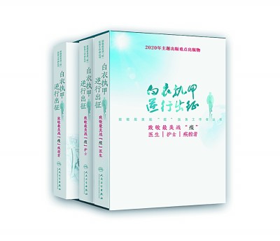 歷史不能忘卻,英雄應(yīng)該銘記。記載他們的逆行,講述他們的故事,再現(xiàn)他們的壯舉,弘揚(yáng)他們的精神,是出版界義不容辭的責(zé)任。在國(guó)家衛(wèi)生健康委員會(huì)、中宣部出版局及社會(huì)各界的大力支持和幫助下,人民衛(wèi)生出版社“白衣執(zhí)甲 逆行出征——致敬最美戰(zhàn)‘疫’醫(yī)務(wù)工作者”叢書(shū),于2020年8月19日中國(guó)醫(yī)師節(jié)前夕出版了。這套叢書(shū),內(nèi)容從數(shù)千篇全國(guó)一線戰(zhàn)“疫”醫(yī)務(wù)工作者征文中精選輯錄而成。依書(shū)寫(xiě)人的身份不同,分為《致敬最美戰(zhàn)“疫”醫(yī)生》《致敬最美戰(zhàn)“疫”護(hù)士》《致敬最美戰(zhàn)“疫”疾控者》三個(gè)分冊(cè),共收錄300余篇文章。