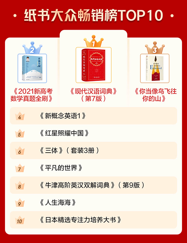 高考是中國大多數(shù)學(xué)生的必經(jīng)之路,想要從萬人中脫穎而出,需要付出許多的努力。從京東圖書數(shù)據(jù)不難看出,攻克數(shù)學(xué)難關(guān)已成為萬千學(xué)子的重要任務(wù),在2020年最暢銷的大眾新書和最暢銷的大眾紙書中,《2021新高考數(shù)學(xué)真題全刷》分別排名第一、第二。