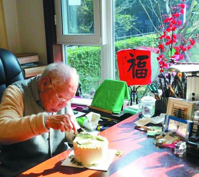 1月15日,農(nóng)歷臘月初三,中國文壇常青樹馬識途先生在成都家中迎來了自己的第106個生日。家人特地為老人定制了一個抹茶味的生日蛋糕。看到這個精致蛋糕,馬老開心不已,他拿著刀小心翼翼地親自切開,與親朋好友一起分享自己的快樂。