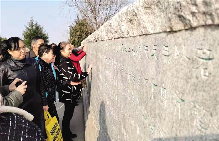 活動中,我市50多名視障讀者應(yīng)邀在50多名志愿者的攙扶和引導(dǎo)下走進了蘭州國學(xué)館,開始了這場雙手“觸摸”國學(xué)之旅。講解員分兩組帶領(lǐng)著大家參觀了蘭州國學(xué)館,在他們溫暖、親切的嗓音里,國學(xué)館的風(fēng)情樣貌逐漸在視障讀者的心中變得愈發(fā)清晰。一路上,工作人員還不斷鼓勵他們用身體去觸摸影雕、浮雕、線刻等,用指尖近距離感受著國學(xué)精粹的無比魅力。參觀完畢后,視障讀者們舉行了國學(xué)經(jīng)典交流與分享活動,在暢所欲言中表達了內(nèi)心的激動和喜悅。