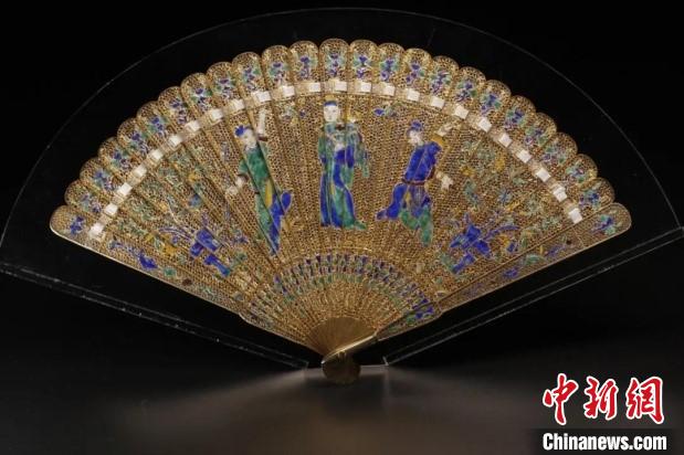 館藏的銀累絲鎏金燒藍(lán)戲曲人物故事圖折扇。廣東省博物館 供圖