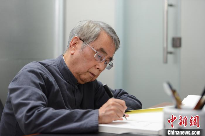 圖為翻譯家楊武能接受中新網(wǎng)記者專訪。何蓬磊 攝