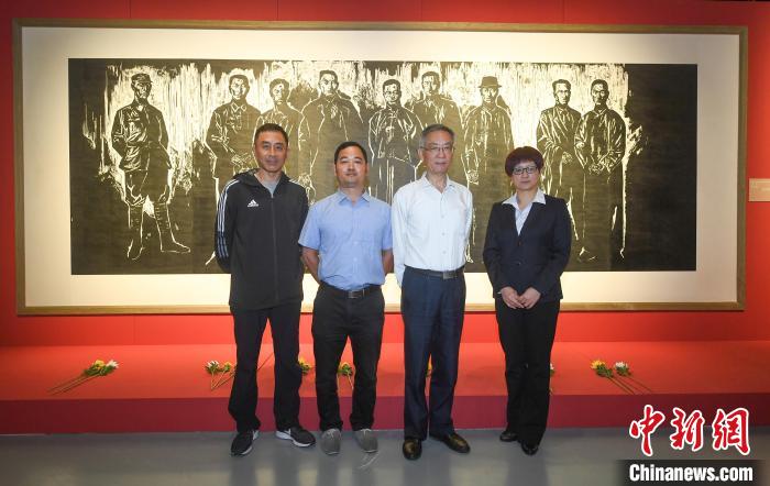 6月5日,在浙江杭州舉行的《瞬間:重返浙江紅色現(xiàn)場(chǎng)》新書發(fā)布現(xiàn)場(chǎng),寧波市奉化區(qū)委黨校教師裘是等四人在一幅畫作前拍了一張合影。