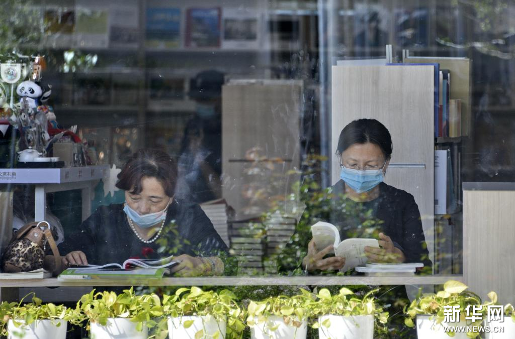 9月6日,市民在北京宛平古城內(nèi)的和平書店看書。新華社記者 李欣 攝