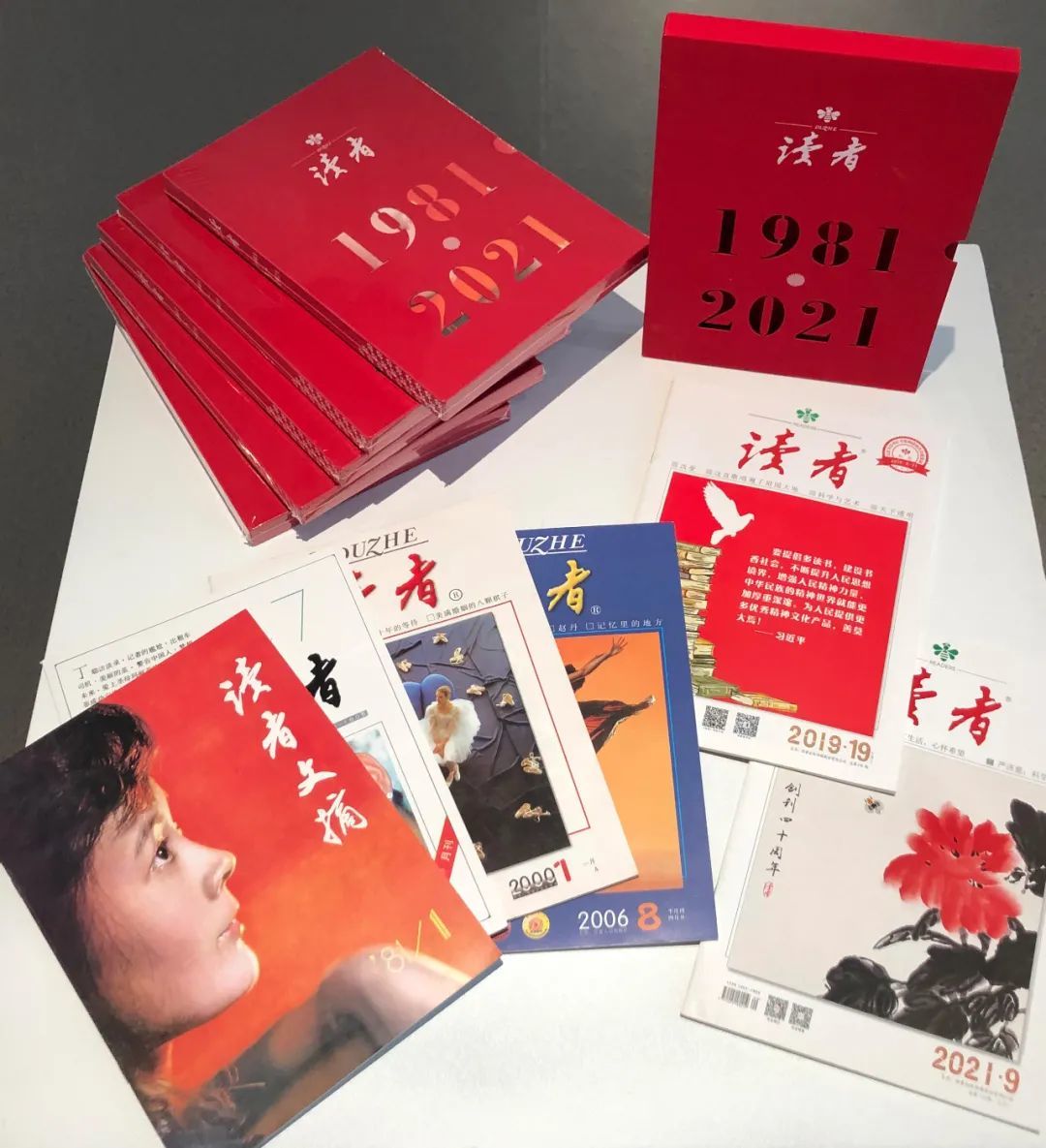 組成了這套,花錢都很難買到的:《讀者》雜志40周年紀(jì)念刊合集。