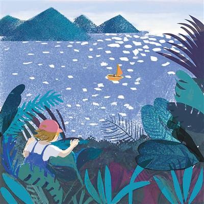 在遠(yuǎn)離故鄉(xiāng)的城市里,我的心無處可去。身處故鄉(xiāng)的時(shí)候,我們總眼望遠(yuǎn)方,“然而/那未知的風(fēng)景才是我向往的/哪怕它已落花滿地/哪怕它已人去樓空”。我喜歡這四句,因?yàn)樗欠N平靜而堅(jiān)決的向往,寥寥幾句卻直透人心。這首詩的配圖是樹叢中的孩子遠(yuǎn)眺平靜湖面上一艘小船,粼粼的湖面像藍(lán)灰色的操場(chǎng)一樣平實(shí),就像無聲的邀請(qǐng)。但當(dāng)我們走到遠(yuǎn)方,故鄉(xiāng)又會(huì)成為心頭揮之不去的念想。