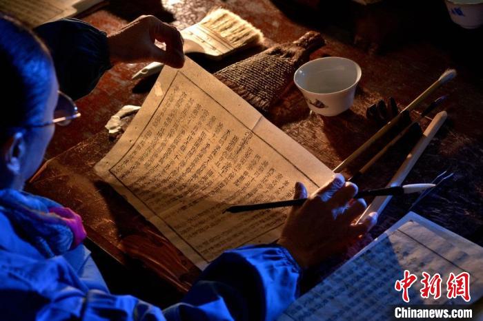 中新網(wǎng)成都11月16日電 (唐倩)戴著一副老花眼鏡,袁東玨坐在修補臺旁,臺面上平鋪著一疊泛黃殘損的書頁,彎彎曲曲滿是蟲蛀痕跡,一張張粘連在一起,這是一部清代年間的族譜,蟲蛀很嚴(yán)重。她很小心地揭起一頁布滿蛀洞的古籍,輕輕展開,有的地方緊緊粘在一起,她用一把竹子磨制的起子輕輕挑開。