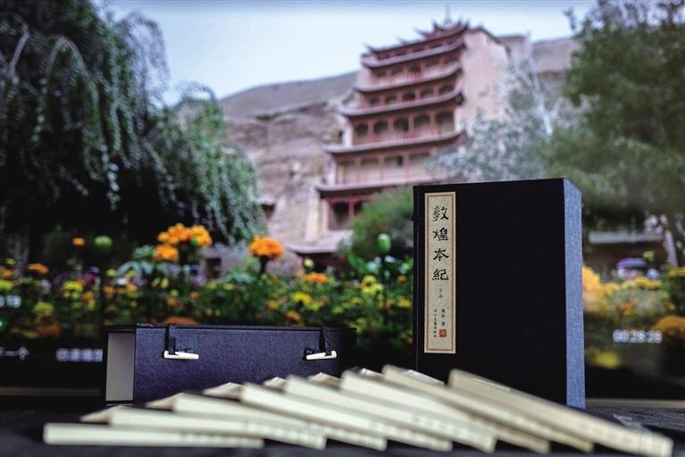 兩個(gè)月后,我如愿以償。《敦煌本紀(jì)》繁體線裝本(限量版)出品,兩函,每函八冊(cè),總計(jì)十六冊(cè),繁體豎排,全手工裝訂。技藝之美,工序之繁,裝幀之考究,未之見過!當(dāng)我打開拿到手上時(shí)肅然起敬,自然會(huì)靜下來,恭恭敬敬翻閱,你能感受到甘肅豐富的歷史文化資源、厚重的文化積淀和波瀾壯闊的滄桑巨變。正是偉大的藝術(shù)和同樣偉大的宗教,在敦煌建筑了人類精神的輝煌莫高窟,人們生活在其中,才擁有現(xiàn)實(shí)人生意義的充實(shí)感和踏實(shí)感。