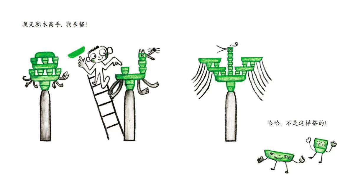 兒童蠟筆涂鴉式的拙趣畫風(fēng),配合生動(dòng)鮮活、天真質(zhì)樸的畫面,處處透著童真,更加符合孩子的審美趣味。透過簡(jiǎn)單童趣的意象,孩子可以展開更多天馬行空的想象,給創(chuàng)新創(chuàng)造能力插上自由的翅膀。