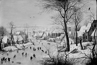 老彼得·勃魯蓋爾作品《有滑冰者和捕鳥器的冬景》
