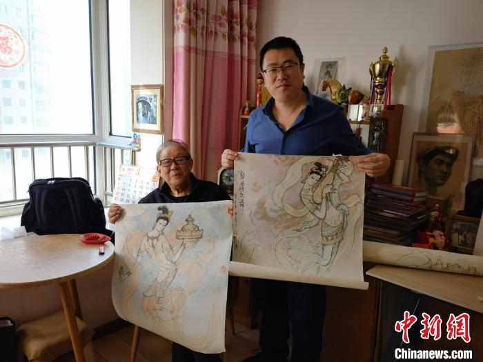 3月上旬,《絲路花雨·誕生》作者陳曉斌(右)拜訪今年86歲的舞美設(shè)計(jì)師李明強(qiáng)(右)老先生?!⊥跸让稀z