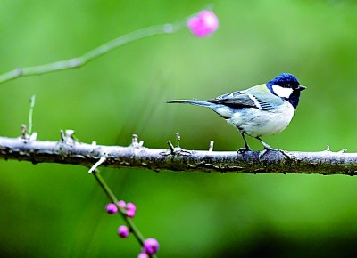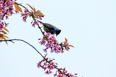 湖南省龍山縣,花兒開(kāi)放,引來(lái)小鳥(niǎo)“鬧春戲花”。新華社發(fā)