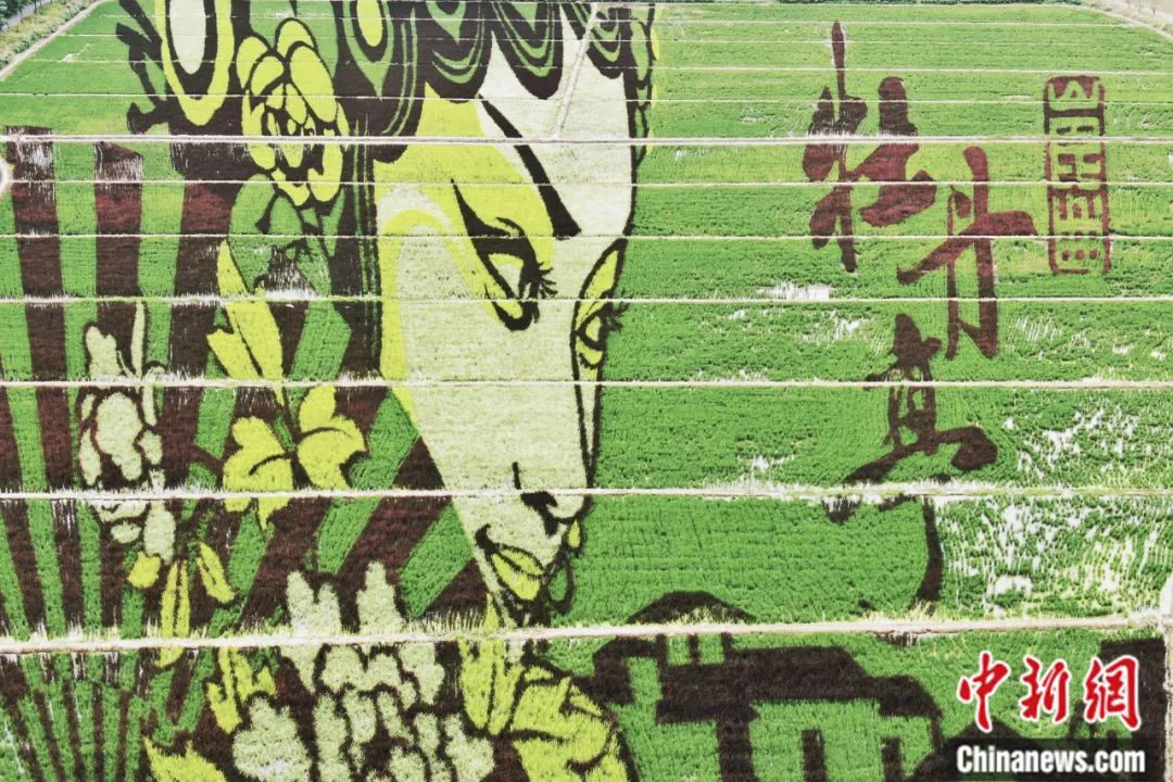 2020年8月,航拍江蘇昆山張浦鎮(zhèn)“牡丹亭”稻田藝術(shù)畫。中新社記者 泱波 攝