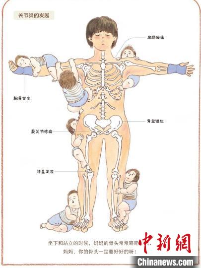 《我的媽媽》內(nèi)文圖,展現(xiàn)了產(chǎn)后媽媽會發(fā)生的骨骼疼痛 接力出版社供圖