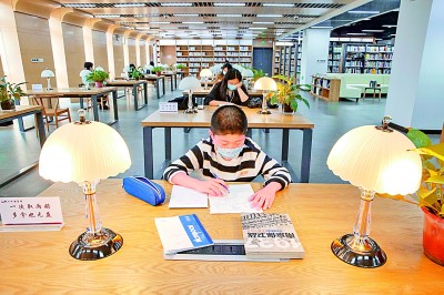 江蘇省南京市六合區(qū)圖書館成為市民讀書學習的理想場所。史俊攝/光明圖片