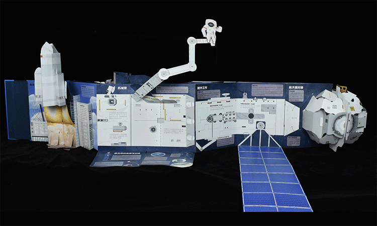 圖為《繁星作伴好還鄉(xiāng):空間站全景立體書(shū)》展開(kāi)側(cè)面圖