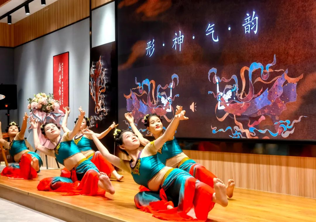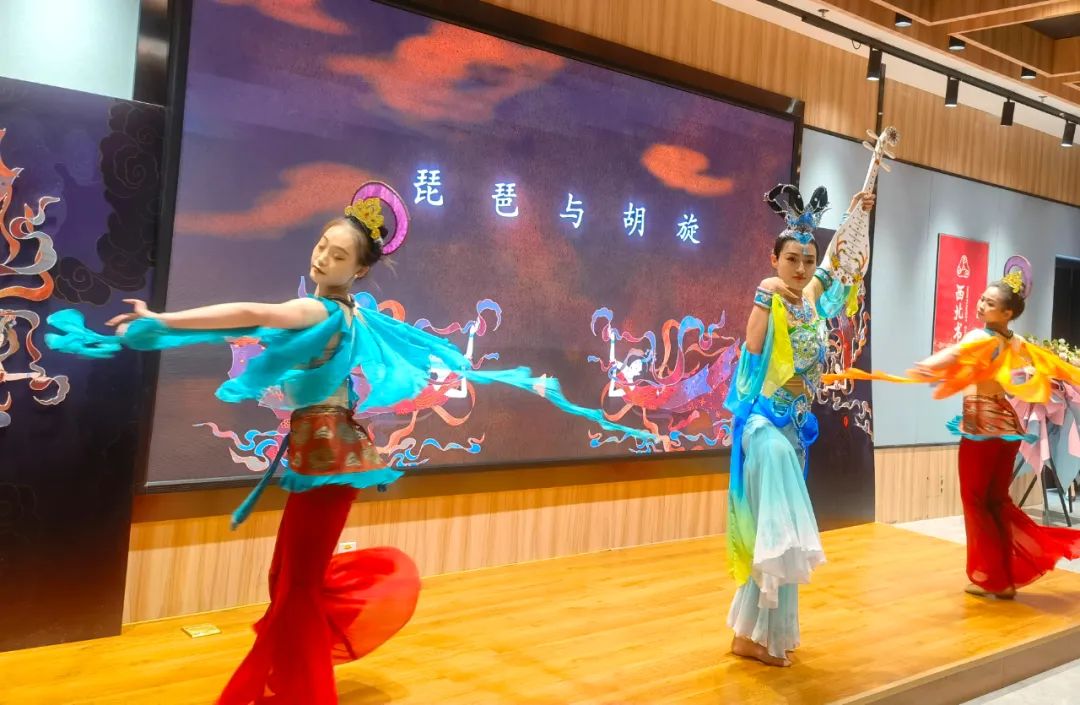 見面會現(xiàn)場,作者介紹了本書創(chuàng)作歷程,并通過“形、神、氣、韻”“抻、曲”“舞姿控制”“四臂觀音”“四人飛天”“胡旋與琵琶”等組合精彩紛呈的表演,使讀者更加直觀地了解本書的主要內容和敦煌舞蹈的文化內涵,感受敦煌舞蹈傳遞出的藝術價值、文化素養(yǎng)和無窮的魅力。