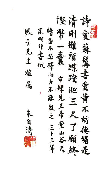 朱自清詩(shī)作手跡