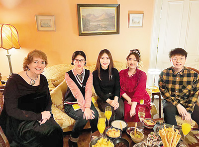 到愛爾蘭人家中做客、共度圣誕節(jié),對張靜瑄來說是新鮮的體驗。“那天晚上,我嘗到了許多圣誕節(jié)的特色美食,比如烤火雞、布丁等,我們幾名中國學(xué)生帶去了餃子,和老爺爺、老奶奶一同分享。席間,我們聊到春節(jié)和圣誕節(jié)的慶祝方式、對東西方家庭的意義等,這讓我切身體會到了不同國家的文化差異,也拓展了我的認知,是我難忘的珍貴回憶。”周姝蕓