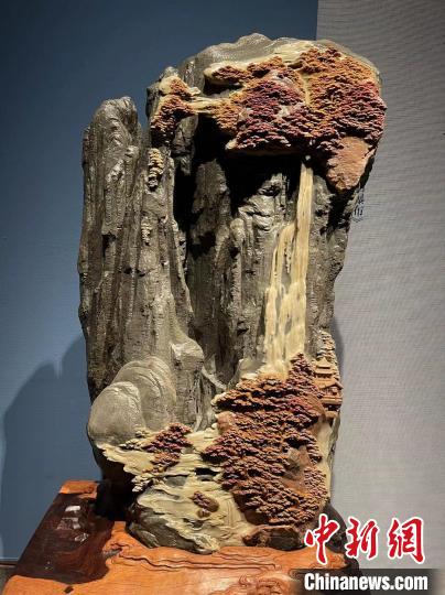 正是因?yàn)閹е@些想法,在創(chuàng)作《飛流直下三千尺》時(shí),徐偉軍并不是在山石頂端直接刻出瀑布,而是讓瀑布從一片松林中垂直而下,“途徑”下一片松林,再流向四周,創(chuàng)造出瀑布的磅礴之勢(shì)。記者看到,整件作品,氣韻生動(dòng)。徐偉軍還特地保留了原石粗糙的表皮,刻畫(huà)出懸崖峭壁的嶙峋之態(tài)。
