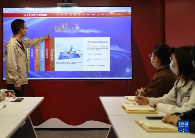 10月14日,“紀(jì)錄小康工程”數(shù)據(jù)庫(kù)工作人員在介紹“紀(jì)錄小康工程”數(shù)據(jù)庫(kù)。新華社記者 王楷焱 攝